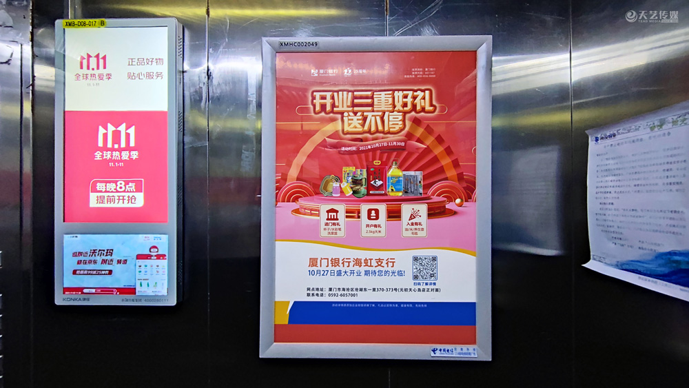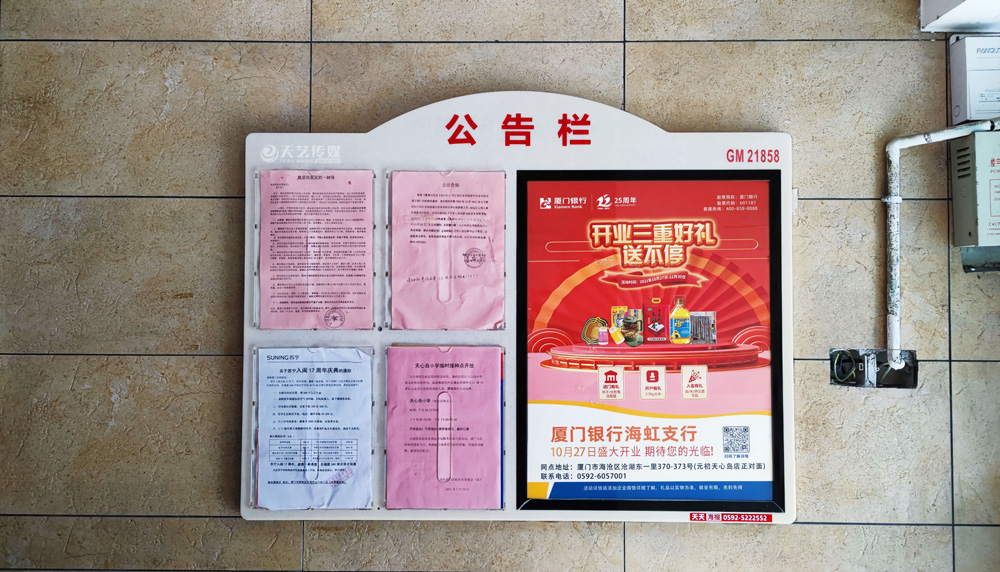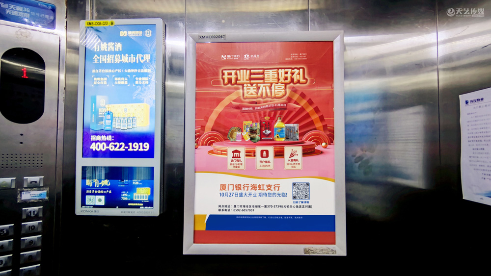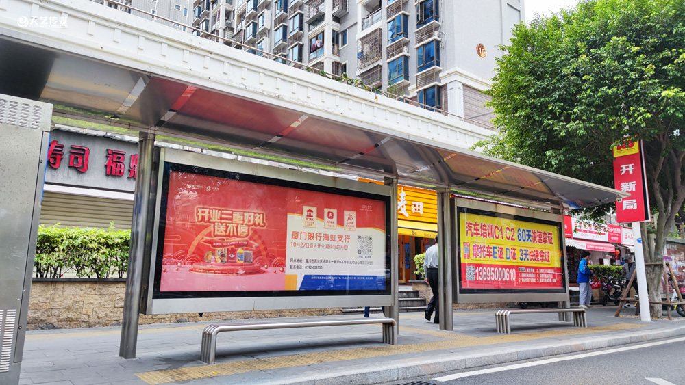 此次廈門銀行海虹支行選擇與天藝傳媒進(jìn)行戶外媒體投放的合作,投放海滄區(qū)(以海滄的生活區(qū)、海虹支行周邊區(qū)域?yàn)橹?的多個(gè)戶外廣告媒體,包括公交候車亭媒體、電梯框架廣告、社區(qū)公告欄媒體及社區(qū)出入口的道閘媒體等。