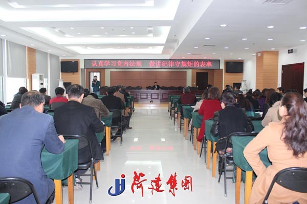 為進(jìn)一步加強(qiáng)思想道德建設(shè),牢固樹立黨員的黨章、黨規(guī)、黨紀(jì)意識(shí),3月26日,集團(tuán)黨委舉辦黨課專題教育宣講會(huì)。集團(tuán)黨委副書記、紀(jì)委書記任永信同志以《認(rèn)真學(xué)習(xí)黨內(nèi)法規(guī),做講紀(jì)律、守規(guī)矩的表率》為題,為大家上了一堂生動(dòng)精彩的黨課。集團(tuán)領(lǐng)導(dǎo)、機(jī)關(guān)全體黨員和基層各單位黨支部書記參加宣講會(huì)議。
