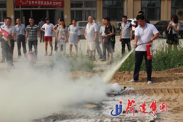 消防演練前,魏如賀教官首先向大家講解了消防器材的使用方法及應急逃生技能,并觀看了應急逃生錄像。隨后,總指揮長呂麗英吹響了消防疏散演練的緊急哨聲,所有人員在聽到疏散哨聲后快速有序的逃離著火點,全部疏散到安全地帶,并分隊進行了現場操作演練。