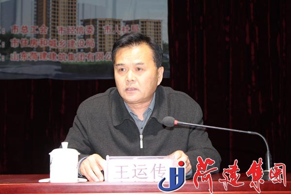 菏澤市住建局黨委副書記、市建設(shè)工會主任孔令善在開幕式上講話
