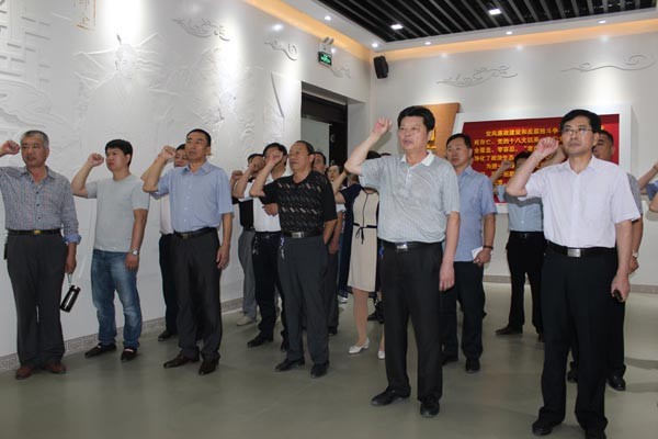參觀結(jié)束后,在莊嚴(yán)的黨旗前,集團(tuán)黨委書記、董事長(zhǎng)李信強(qiáng)帶領(lǐng)全體參觀人員重溫入黨誓詞。
