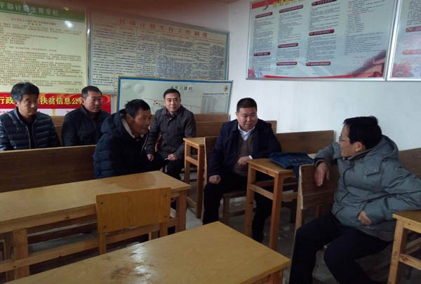 集團(tuán)總經(jīng)理苗林(右二)了解第一書(shū)記工作情況