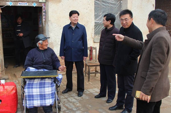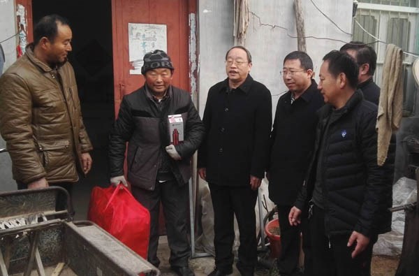 根據(jù)市委扶貧開(kāi)發(fā)領(lǐng)導(dǎo)小組安排部署,12月15日上午,集團(tuán)黨委書(shū)記、董事長(zhǎng)李信強(qiáng),總經(jīng)理苗林帶領(lǐng)集團(tuán)扶貧工作隊(duì)及駐村第一書(shū)記,到成武縣孫寺鎮(zhèn)6個(gè)幫扶行政村暨雙聯(lián)雙創(chuàng)聯(lián)系村,開(kāi)展“幫扶走訪送溫暖”活動(dòng),為缺少過(guò)冬御寒物品的五保戶(hù)和貧困孤兒送去了棉被、被套和保溫杯等慰問(wèn)品。孫寺鎮(zhèn)黨委書(shū)記高海民等陪同走訪慰問(wèn)。