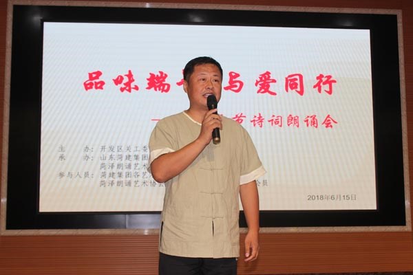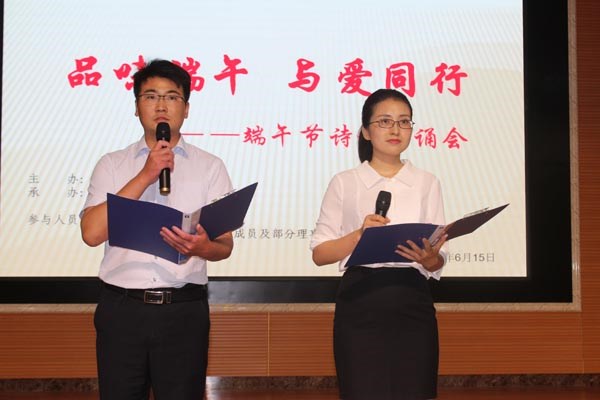 揭牌儀式結(jié)束后,菏澤市朗誦藝術(shù)家協(xié)會(huì)聯(lián)合集團(tuán)朗誦協(xié)會(huì)舉辦了“品愛(ài)端午與愛(ài)同行”詩(shī)詞朗誦會(huì)。市朗誦藝術(shù)協(xié)會(huì)周忠良、趙巨聲、李東娟、徐茵、辛云霞、苑蕾、瞿曉妍等著名藝術(shù)家登臺(tái)表演,集團(tuán)黨委副書記任永信及職工李霞、孔令陽(yáng)、張濤、王會(huì)敏、汲艷玲等與藝術(shù)家同臺(tái)演出,《紅梅喚春》《蘇軾:水調(diào)歌頭》《如夢(mèng)令》《宣州謝朓樓餞別校書叔云》《名著里的端午節(jié)》等一首首或古代、或現(xiàn)代、或優(yōu)美、或深沉的中華經(jīng)典詩(shī)文、現(xiàn)代詩(shī)歌和個(gè)人原創(chuàng)作品,通過(guò)滿懷深情的朗誦表達(dá)出來(lái),傾情抒發(fā)著自己對(duì)祖國(guó)的情感,對(duì)中華悠久文化的贊美。