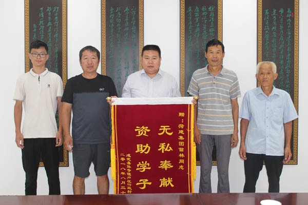 9月1日上午,成武縣孫寺鎮(zhèn)盧莊行政村黨支部書記和貧困戶宋茂新及兒子宋永生,將一面“無私奉獻(xiàn)資助學(xué)子”的錦旗送到集團(tuán)公司總經(jīng)理苗林手中,并表示衷心的感謝。