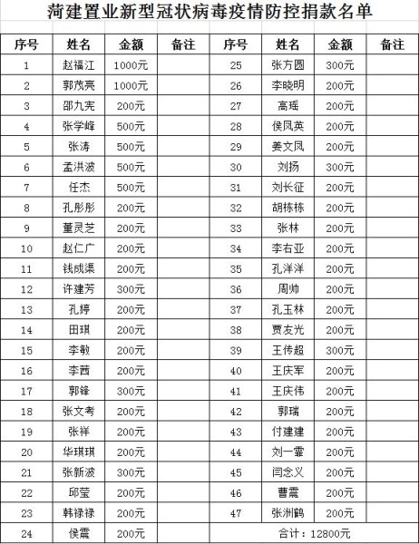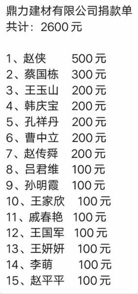 ![]() 菏建置業(yè)公司2個(gè)小時(shí)之內(nèi)捐款12800元 |