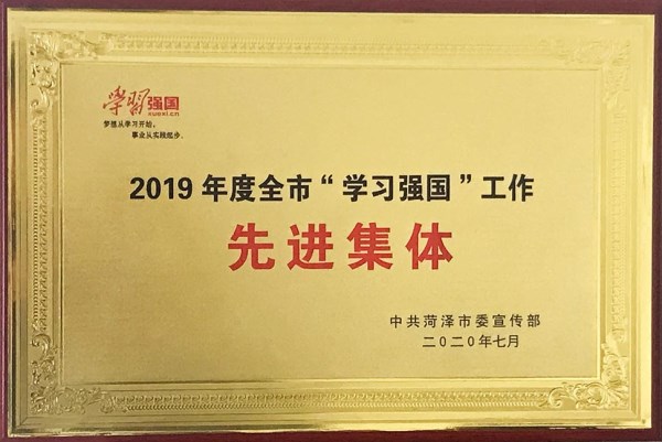 ![]() 菏建國投公司獲評2019年度菏澤市“學(xué)習(xí)強(qiáng)國”工作先進(jìn)集體 |