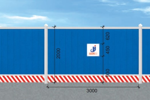 1)圍擋上部1.7米為藍(lán)色圍擋,下部0.3米為紅白相間擋腳板,材質(zhì)均為0.8mm厚彩鋼板;