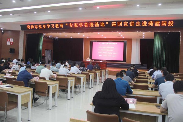 按照市委統(tǒng)一部署,5月29日,菏澤市黨史學(xué)習(xí)教育“專(zhuān)家學(xué)者進(jìn)基地”巡回宣講走進(jìn)菏建國(guó)投公司。市委講師團(tuán)副團(tuán)長(zhǎng)徐兆斌以“開(kāi)展黨史學(xué)習(xí)教育,汲取強(qiáng)大奮進(jìn)力量”為主題,講了一堂生動(dòng)而又深刻的中共黨史學(xué)習(xí)教育專(zhuān)題黨課。菏建國(guó)投黨委副書(shū)記、總經(jīng)理蘇紅軍主持會(huì)議并作重要講話。菏建國(guó)投領(lǐng)導(dǎo)班子,國(guó)投機(jī)關(guān)全體工作人員,各權(quán)屬單位領(lǐng)導(dǎo)班子全體人員,三級(jí)單位主要負(fù)責(zé)人參加會(huì)議。