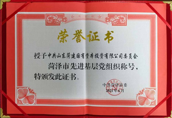 ![]() 菏建國投黨委被中共菏澤市委授予“菏澤市先進(jìn)基層黨組織”榮譽(yù)稱號 |