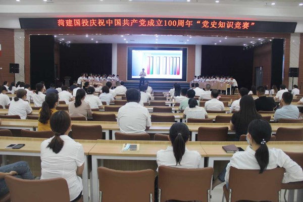 為慶祝中國共產(chǎn)黨成立100周年,深入開展黨史學習教育,團結(jié)帶領廣大黨員干部職工永遠跟黨走、奮起新征程,7月1日下午,菏建國投黨群工作部聯(lián)合工會開展慶祝中國共產(chǎn)黨成立100周年“黨史知識競賽”活動。菏建國投領導班子及各權(quán)屬公司觀賽人員共180余人參加活動。