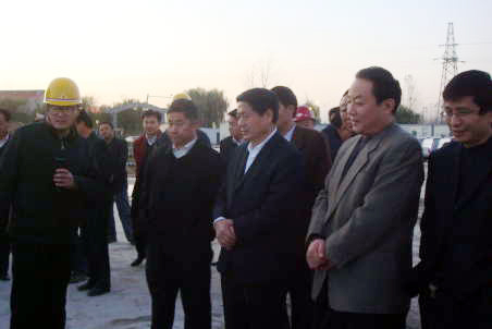11月19日下午,省政協(xié)副主席、省委統(tǒng)戰(zhàn)部部長張傳林一行到菏澤大劇院工地視察。在市領(lǐng)導(dǎo)趙潤田、王文升、高木斗、劉勇陪同下,張傳林一行視察了菏澤大劇院建設(shè)現(xiàn)場,仔細(xì)察看了大劇院工程效果圖和周邊環(huán)境效果圖,聽取了工程概況、規(guī)模、功能等方面的匯報,詳細(xì)了解大劇院及周邊環(huán)境的施工進(jìn)展、質(zhì)量、安全等建設(shè)情況。趙潤田書記對大劇院的整體設(shè)想、規(guī)劃設(shè)計、使用功能等情況進(jìn)行了介紹,同時要求提高安全防火意識,加大防火工作力度,確保各項施工始終處于安全控制狀態(tài)。省政協(xié)副主席張傳林對菏澤大劇院高起點規(guī)劃、高標(biāo)準(zhǔn)建設(shè)所取得的成績給予充分肯定和高度評價。市建設(shè)局副局長劉建國,菏建集團(tuán)副總經(jīng)理王振國,省建設(shè)監(jiān)理公司駐工地總監(jiān)鄭金琰等陪同視察。