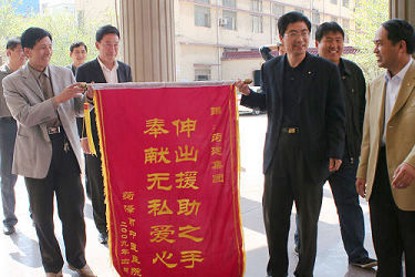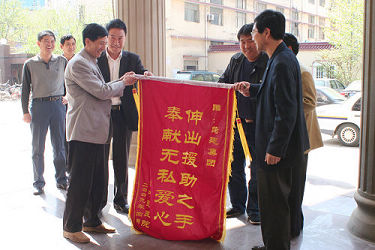 2009年4月21日上午10時(shí),菏澤市中醫(yī)院馬院長(zhǎng)和基建處長(zhǎng)、后勤主任一行三人專門來到菏建集團(tuán),將一面繡著“伸出援助之手,奉獻(xiàn)無私愛心”的錦旗送到菏建集團(tuán)領(lǐng)導(dǎo)手中,感謝菏建集團(tuán)又好又快建成的臨時(shí)病房。