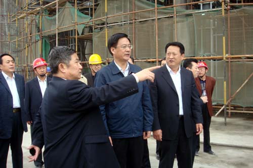 在市領(lǐng)導(dǎo)趙潤田、劉士合、王文生、王浩、支建立、高木斗、劉勇陪同下,劉偉一行深入施工現(xiàn)場,認真察看菏澤大劇院廣場建設(shè)情況和周邊環(huán)境景觀效果圖,聽取工程概況、規(guī)模、功能等方面的情況匯報,趙潤田書記對大劇院整體設(shè)想、規(guī)劃設(shè)計和使用功能等情況進行了介紹。省委副書記劉偉一行穿過鋼管搭設(shè)的腳手架,深入到大劇院一、二層作業(yè)現(xiàn)場,詳細了解各專項功能和作業(yè)進展情況。劉偉對菏澤大劇院高起點規(guī)劃、高標準建設(shè)給予高度評價,對工程的質(zhì)量和進度表示滿意。他指出,要充分認識建設(shè)大劇院的重要意義,堅持把社會效益放在首位,以更加奮發(fā)有為的精神狀態(tài)、更加求真務(wù)實的工作作風,進一步增強做好文化基礎(chǔ)設(shè)施建設(shè)的責任感和使命感;要把群眾滿意作為開展學習實踐科學發(fā)展觀活動的重要標準,堅持高標準,體現(xiàn)高品位,統(tǒng)籌協(xié)調(diào),加快大劇院建設(shè)步伐,在質(zhì)量上、時間上予以保障,確保工程質(zhì)量和施工安全,使之成為菏澤城市一張靚麗的名片。