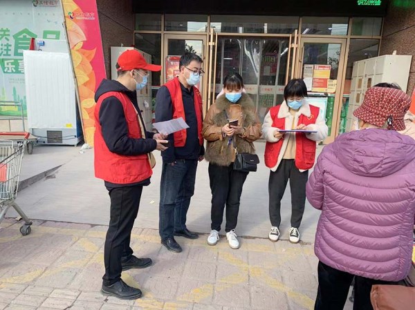 ![]() 志愿者們在超市門口為下載軟件的居民耐心講解使用方法 |