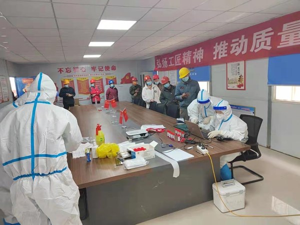 ![]() 公司邀請(qǐng)市婦幼保健院醫(yī)護(hù)人員進(jìn)項(xiàng)目、下工地為員工進(jìn)行核酸檢測(cè) |