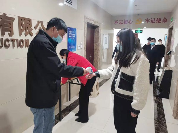 ![]() 在辦公樓和各項(xiàng)目嚴(yán)格落實(shí)戴口罩、測(cè)體溫、驗(yàn)“兩碼”等措施 |