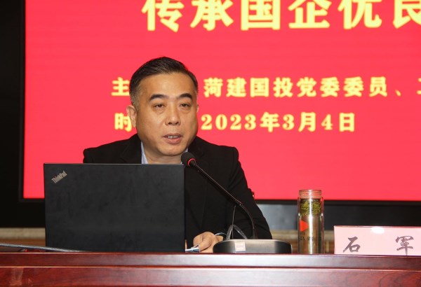 ![]() 菏建國投黨委委員、工會主席石軍以《重溫菏建發(fā)展歷史,傳承國企優(yōu)良傳統(tǒng)》為題作宣講報告 |
