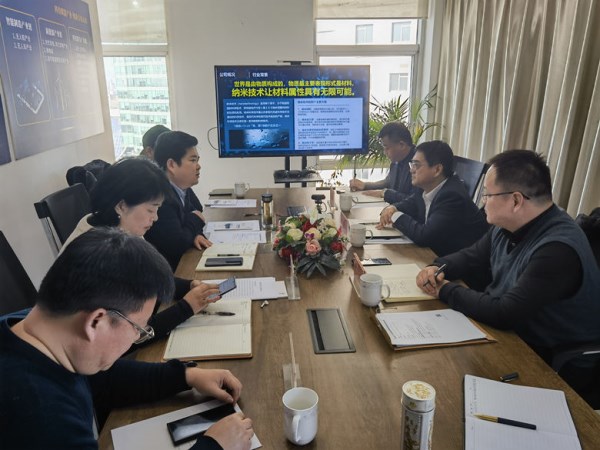 考察組一行首先到中科納米產(chǎn)業(yè)集團(tuán)(工商注冊(cè)名:京納清科(北京)技術(shù)開(kāi)發(fā)有限公司)參觀考察,并與中科納米產(chǎn)業(yè)集團(tuán)董事長(zhǎng)武興華、副總裁曹冬梅等人進(jìn)行座談??疾旖M重點(diǎn)了解了該公司的納米新材料產(chǎn)業(yè)鏈,比如其中的納米氣凝膠建材產(chǎn)業(yè)、泡沫鋁產(chǎn)業(yè)等。雙方座談?wù)J為,今后可以在納米技術(shù)產(chǎn)品、共建研發(fā)平臺(tái)、產(chǎn)業(yè)基金、項(xiàng)目合作、工業(yè)地產(chǎn)、聯(lián)合開(kāi)發(fā)、教育等方面加強(qiáng)交流合作。