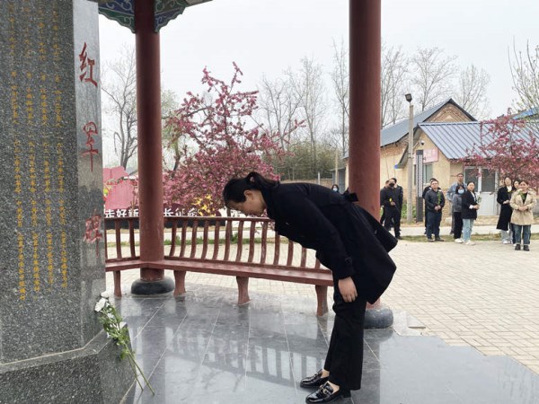 單縣是湖西革命根據(jù)地的中心區(qū),張寨是湖西區(qū)黨的工委、地委、縣委活動的中心,在革命戰(zhàn)爭年代作出了卓越的貢獻,成為了湖西革命地區(qū)的中心,被稱為湖西“小延安”。在紅軍碑前,大家手持黃色和白色菊花,肅立在碑前向革命烈士默哀,依次向烈士們敬獻鮮花并瞻仰紅軍碑,表達對革命先輩的敬仰和哀思。