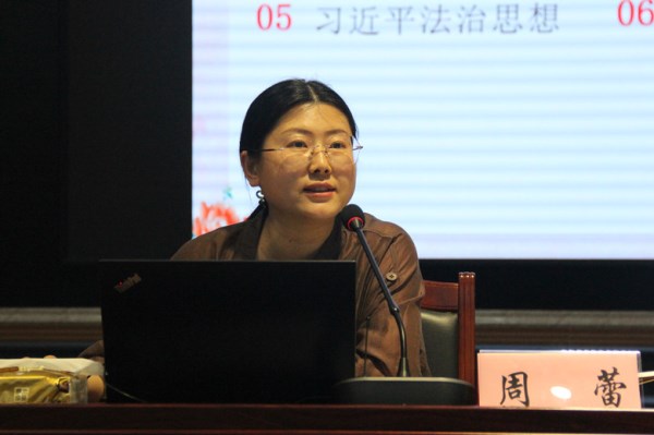 在宣講中,周蕾以“習(xí)近平文化思想”為主題,從充分認(rèn)識習(xí)近平文化思想的重大意義、深刻領(lǐng)會習(xí)近平文化思想的鮮明特征及豐富內(nèi)涵、深入貫徹習(xí)近平文化思想的實踐要求、深刻把握習(xí)近平文化思想的原創(chuàng)性貢獻等四個方面,詳細闡述了習(xí)近平文化思想的道理、學(xué)理、哲理以及中華優(yōu)秀傳統(tǒng)文化的豐富內(nèi)涵,和大家共同探討了如何在全球化背景下保持和發(fā)展本民族文化特色、如何處理好文化傳承與創(chuàng)新的關(guān)系、如何讓傳統(tǒng)文化在現(xiàn)代社會中煥發(fā)出新的生機與活力等問題。