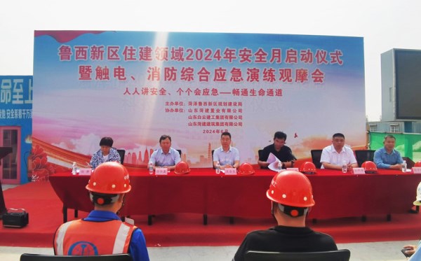為深入學(xué)習(xí)習(xí)近平總書記關(guān)于安全生產(chǎn)工作重要指示精神,強(qiáng)化安全生產(chǎn)紅線意識(shí)和底線思維,實(shí)現(xiàn)安全生產(chǎn)形勢(shì)持續(xù)穩(wěn)定向好,6月4日,魯西新區(qū)住建領(lǐng)域在菏建東方樾府項(xiàng)目現(xiàn)場(chǎng)舉行2024年安全月啟動(dòng)儀式暨觸電、消防綜合應(yīng)急演練觀摩會(huì)活動(dòng)。魯西新區(qū)規(guī)劃建設(shè)局副局長(zhǎng)吳合生,菏建國(guó)投黨委委員、第一副總經(jīng)理、菏建集團(tuán)黨委書記、董事長(zhǎng)徐淑鑫,魯西新區(qū)規(guī)劃建設(shè)局業(yè)務(wù)科室負(fù)責(zé)同志,部分在建工地建設(shè)單位負(fù)責(zé)人、施工單位項(xiàng)目經(jīng)理、監(jiān)理單位總監(jiān)等共計(jì)100余人參加活動(dòng)。