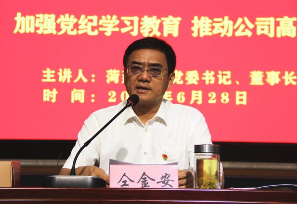 仝金安要求,一是要持續(xù)推進黨的政治建設(shè),必須堅持黨對國有企業(yè)的全面領(lǐng)導(dǎo),必須堅持以馬克思主義中國化最新成果為指導(dǎo),必須堅決執(zhí)行黨的政治路線,必須堅持服務(wù)于國有企業(yè)改革發(fā)展中心任務(wù),必須堅持問題導(dǎo)向、注重發(fā)展實效;二是要不斷提升黨員隊伍建設(shè),做到四個合格,準(zhǔn)確把握新時代黨員隊伍建設(shè)內(nèi)涵,注重四個融合,全面強化新時代黨員隊伍建設(shè)標(biāo)準(zhǔn),落實四個突出,不斷提升新時代黨員隊伍建設(shè)質(zhì)效;三是要全面加強黨的建設(shè),科學(xué)認(rèn)識黨的建設(shè)這一法寶的獨特優(yōu)勢,發(fā)揮黨建引領(lǐng)作用持續(xù)夯實基層基礎(chǔ),運用四種思維將黨建優(yōu)勢轉(zhuǎn)化為發(fā)展優(yōu)勢;四是要縱深推進黨風(fēng)廉政建設(shè),通過學(xué)習(xí)《中國共產(chǎn)黨紀(jì)律處分條例》結(jié)合企業(yè)經(jīng)營實際促進公司高質(zhì)量發(fā)展,推進黨風(fēng)廉政建設(shè),把紀(jì)律和規(guī)矩挺在前面,推動全面從嚴(yán)治黨向縱深發(fā)展。