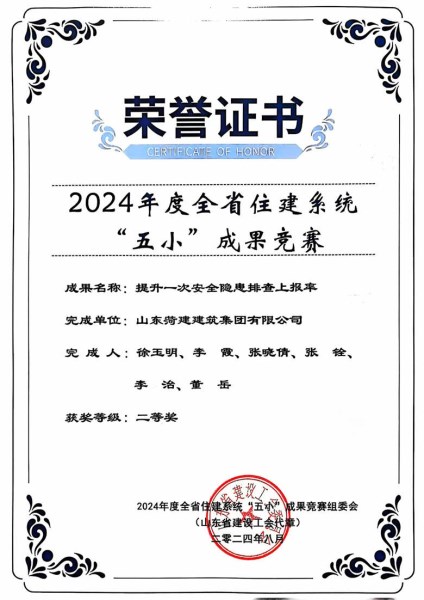 為深入貫徹落實(shí)省委、省政府“八抓二十項”創(chuàng)新舉措要求,今年以來,菏建集團(tuán)深入開展“五小”成果創(chuàng)新活動,廣泛收集職工編寫的好建議、好做法、好成果,不斷強(qiáng)化“人人都是安全員”理念。近期,由菏建集團(tuán)職工徐玉明為第一完成人編寫的“提升一次安全隱患排查上報率”項目在全省住建系統(tǒng)“五小”成果競賽中脫穎而出,榮獲二等獎。