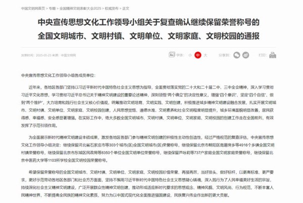 5月23日,中國(guó)文明網(wǎng)發(fā)布《中央宣傳思想文化工作領(lǐng)導(dǎo)小組關(guān)于復(fù)查確認(rèn)繼續(xù)保留榮譽(yù)稱號(hào)的全國(guó)文明城市、文明村鎮(zhèn)、文明單位、文明家庭、文明校園的通報(bào)》,菏建國(guó)投順利通過(guò)復(fù)查,繼續(xù)保持“全國(guó)文明單位”榮譽(yù)稱號(hào)。