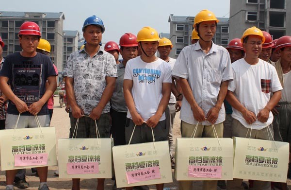 集團(tuán)工會(huì)主席呂麗英向一線工人發(fā)放慰問品