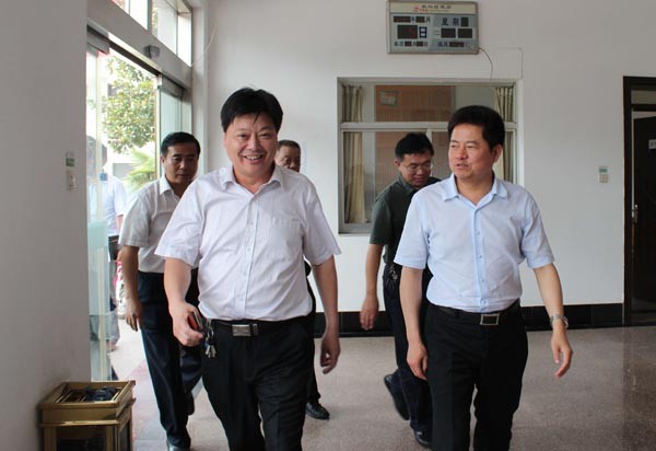 市委常委、副市長張毓華(右一)在李信強(qiáng)總經(jīng)理(前左一)陪同下到集團(tuán)公司調(diào)研