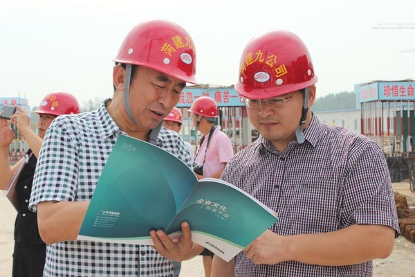集團(tuán)黨委副書記任永信(左)向大眾網(wǎng)菏澤站站長(zhǎng)高登福介紹集團(tuán)《企業(yè)文化形象手冊(cè)》