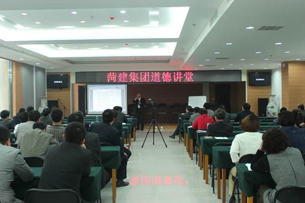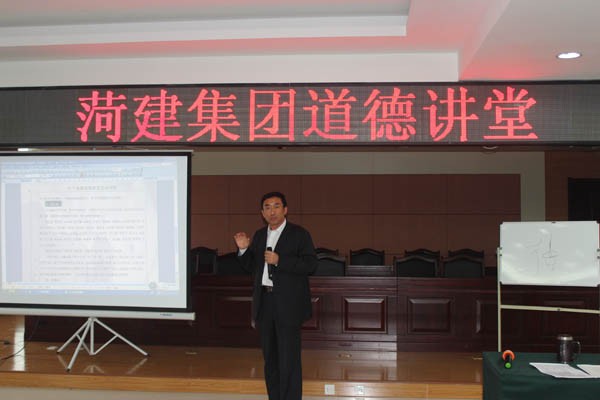 在講堂上,集團(tuán)常務(wù)副總經(jīng)理李永亮首先強(qiáng)調(diào)了開展道德大講堂的目的、意義和形式。講座中,集團(tuán)黨委副書記任永信結(jié)合國(guó)有企業(yè)發(fā)展特點(diǎn),根據(jù)創(chuàng)建國(guó)家級(jí)文明單位標(biāo)準(zhǔn),指出開設(shè)道德大講堂是當(dāng)前社會(huì)和集團(tuán)發(fā)展的需要。他圍繞《弟子規(guī)》、《太上感應(yīng)篇》等國(guó)學(xué)經(jīng)典,結(jié)合實(shí)際,闡述了“孝、悌、忠、信、禮、義、廉、恥”等中華傳統(tǒng)文化精髓,從歷史與傳統(tǒng)的角度,詮釋了現(xiàn)代的道德理念,引導(dǎo)大家講文明,知禮儀,關(guān)愛(ài)他人,回報(bào)社會(huì),在生活和學(xué)習(xí)中身體力行,做文明君子,行圣賢之風(fēng)。隨后,全體人員共同觀看了專題教育片《永遠(yuǎn)的冀魯豫》。