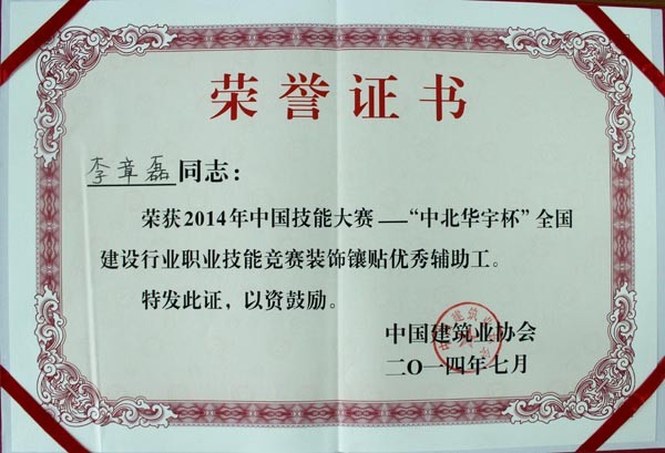 本次技能大賽是建設(shè)行業(yè)近年來規(guī)格較高、規(guī)模較大的一次技能大賽。大賽受住房和城鄉(xiāng)建設(shè)部、人力資源和社會保障部委托,由中國建筑業(yè)協(xié)會、中國就業(yè)培訓(xùn)技術(shù)指導(dǎo)中心和中國海員建設(shè)工會全國委員會組織舉辦。本次競賽工種為砌筑工、鑲貼工,全國21個?。▍^(qū)、市)共122名選手參加大賽。
