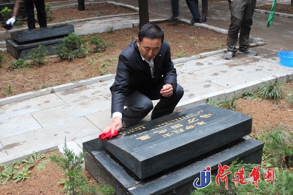 黨委副書記、紀(jì)委書記任永信為烈士墓揩去灰塵