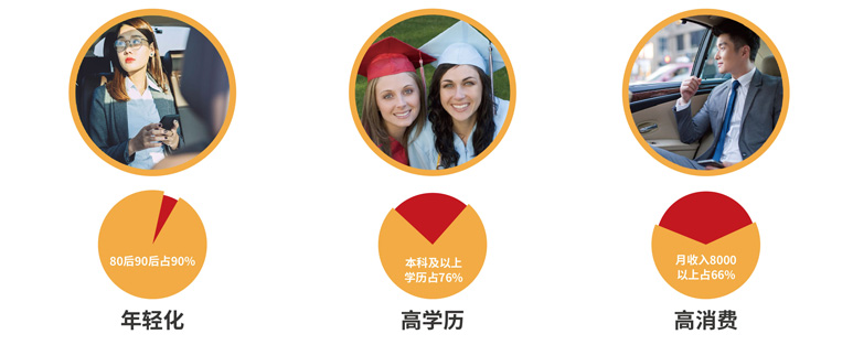 網(wǎng)約車的受眾人群呈現(xiàn)年輕化/高收入/高學歷的特點,與70%以上廣告主的目標客戶群體高度吻合,屬于金字塔尖的消費人群。