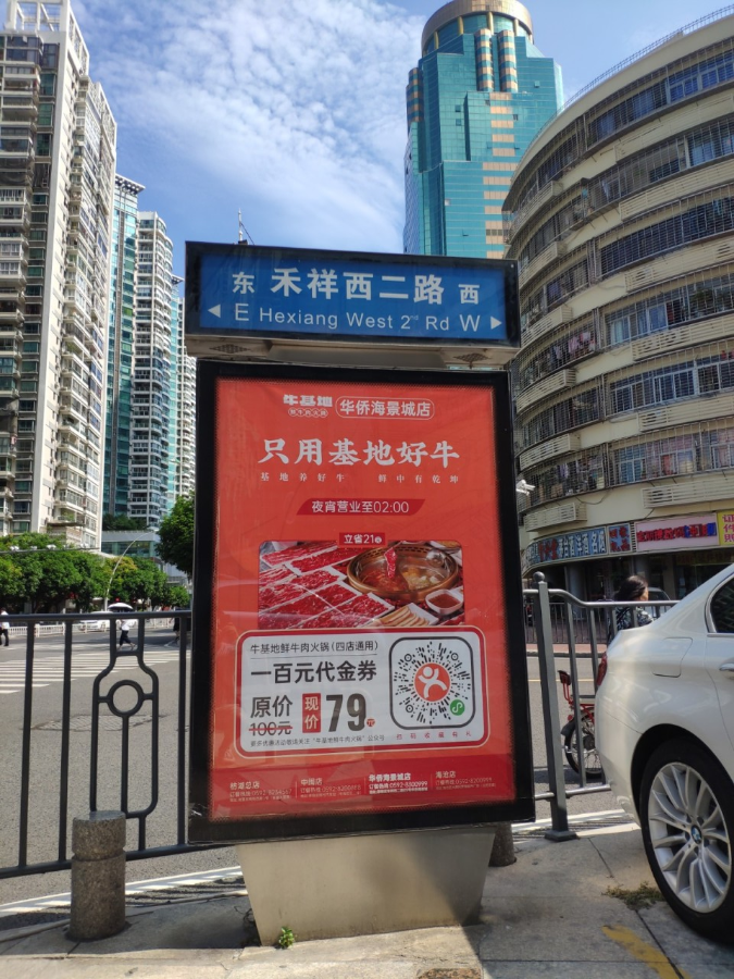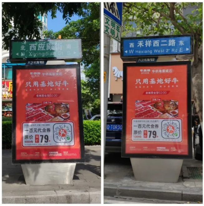 牛基地與天藝傳媒強(qiáng)強(qiáng)聯(lián)手,精準(zhǔn)宣傳將?;厝A僑海景城店附近的城市路名牌戶外媒體進(jìn)行定點宣傳。